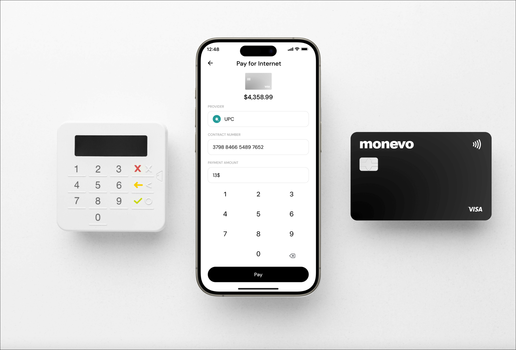 Concept Present the cutting edge mobile banking Monevo, designed to redefine the way to manage your balance.